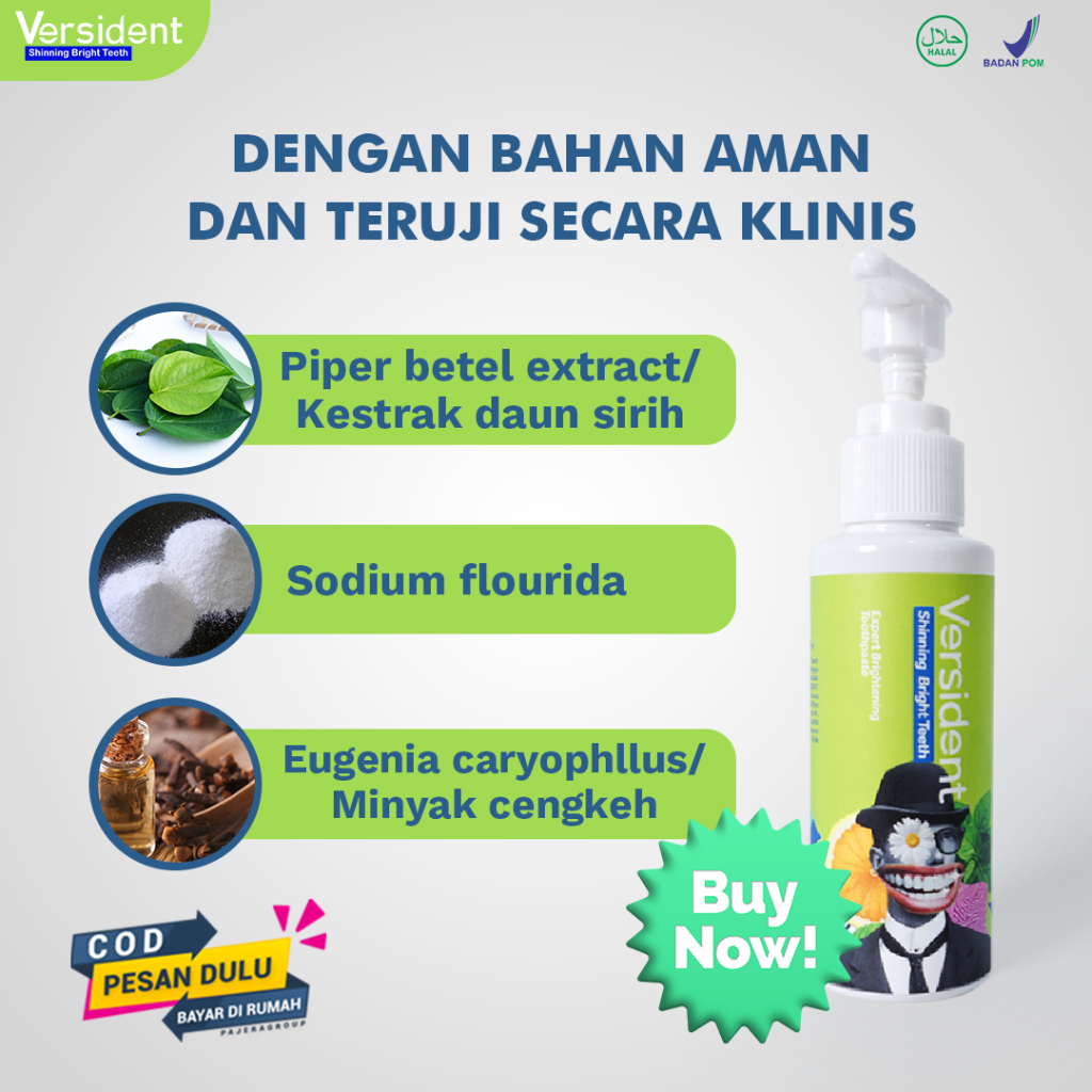 - Untuk hasil yang maksimal gunakan Versident 2x sehari secara rutin